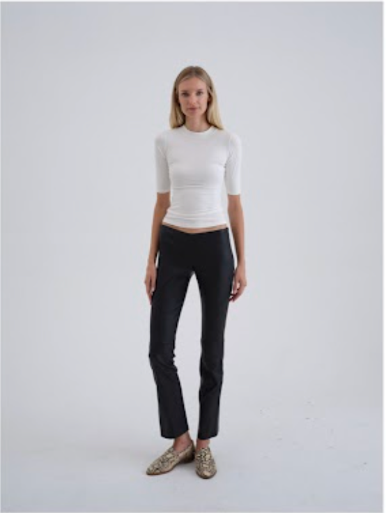 New for SS22, this white stretch tee shirt fits every body like a glove making it an easy every day staple.